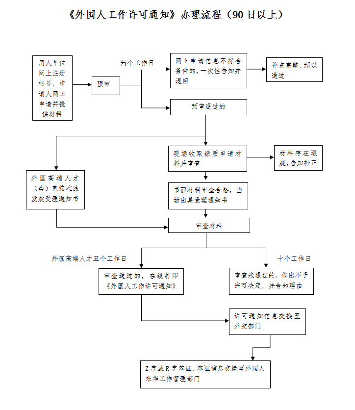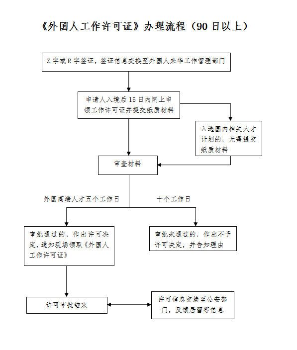 《国家外国专家局关于印发外国人来华工作许可服务指南(暂行)的通知》(外专发﹝2017﹞36号) 根据国务院审改办决定,“外国人入境就业许可”和“外国专家来华工作许可”整合为“外国人来华工作许可”,由国家外国专家局负责组织实施,地方人民政府结合实际参照执行。 | |||